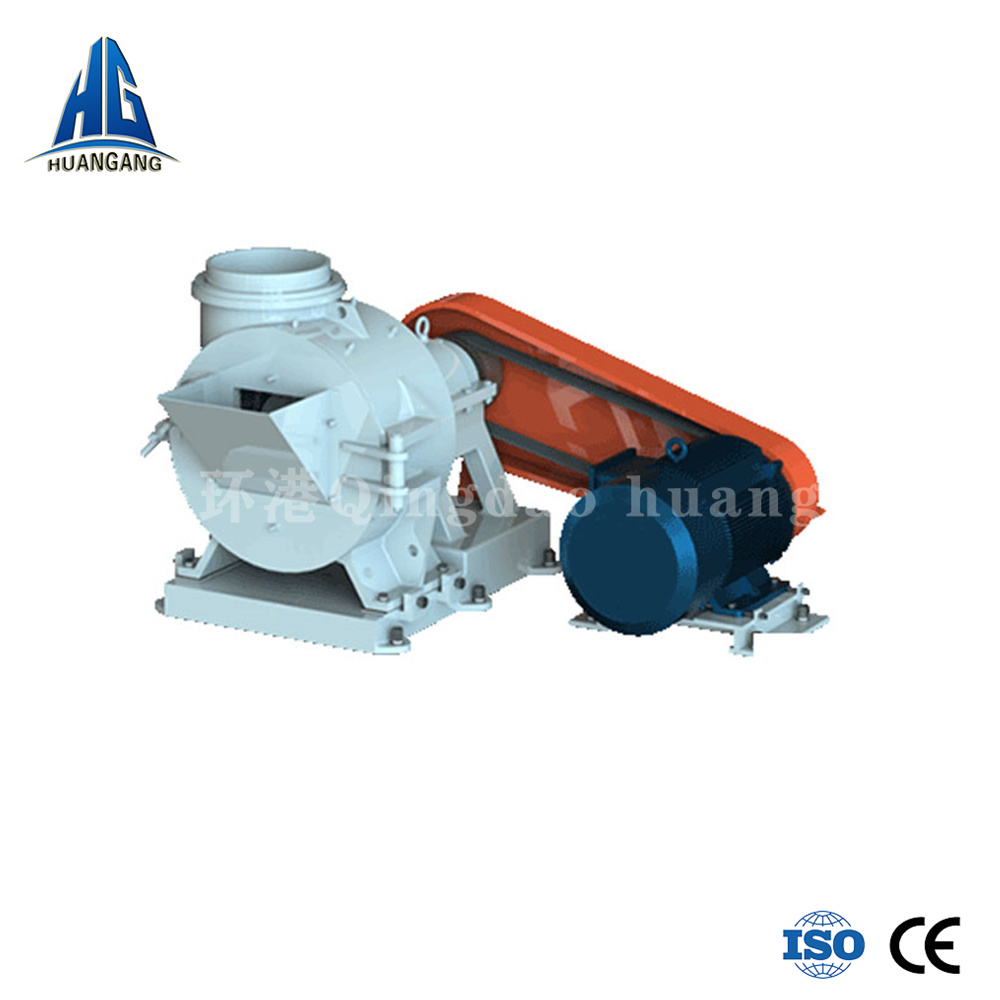 經(jīng)破碎機(jī)破碎成小于15mm的物料,經(jīng)傳輸帶和斗提機(jī)等輸送設(shè)備送入制砂機(jī)主機(jī)內(nèi)。主電機(jī)通過皮帶機(jī)構(gòu),帶動(dòng)制砂機(jī)主軸和擺錘組件轉(zhuǎn)動(dòng)。物料受到高速旋轉(zhuǎn)的擺錘撞擊擠壓而粉碎,合格的砂粒由頂部出砂口組件帶出,隨重力掉落進(jìn)選粉組件,并從溜槽出料,即為成品。不合格的砂粒回到制砂機(jī)內(nèi)部重新粉碎。粉狀物料隨氣流上升通過選粉組件后進(jìn)入分析機(jī),其中粗粉落回選粉下殼組件,從溜槽出料;較細(xì)的粉則通過分析機(jī),粒度較大的收集在大旋風(fēng)中,從卸料閥排出,粒度較小的收集在脈沖收塵器中。整機(jī)系統(tǒng)內(nèi)氣流均在負(fù)壓下流動(dòng),室內(nèi)衛(wèi)生條件好。